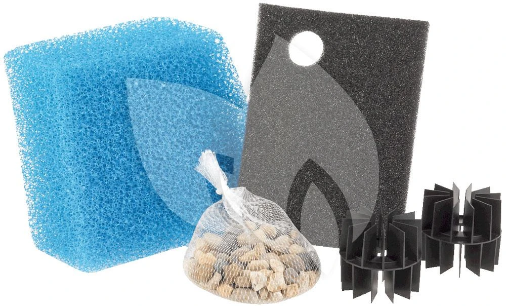 - Onderdelen filterset: filtersponzen, filtergesteente en bio-oppervlakte elementen