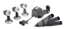 De Lunaled 9s is een LED-verlichting die zorgt voor bijzondere sfeer in uw tuin. De innovatieve, witte LED dioden zijn voorzien van een hoogwaardige roestvrijstalen kap die hen beschermd tegen beschadigingen en maakt tevens een snelle regeling van het waterdoorstroomvolume mogelijk. Dankzij de innovatieve slangverbinding met uitgang voor de netkabel is de installatie van deze verlichting heel eenvoudig. De slang wordt onder de bronsteen doorgesneden en de slangkoppelaar wordt ertussen geplaatst. Zo kan de netkabel heel eenvoudig door de koppelaar naar buiten worden geleid en hoeft hij niet meer met veel moeite door de hele lengte van de slang getrokken te worden. Eenvoudige installatie met een overweldigend effect!