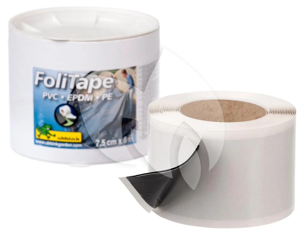 De FoliTape is een universele tweezijdige plakband die u kunt gebruiken voor zowel PVC- als PE- en EPDM- vijverfolies. Op een rol is 6 meter zwarte tape verwerkt met een breedte van 7.5 cm.
